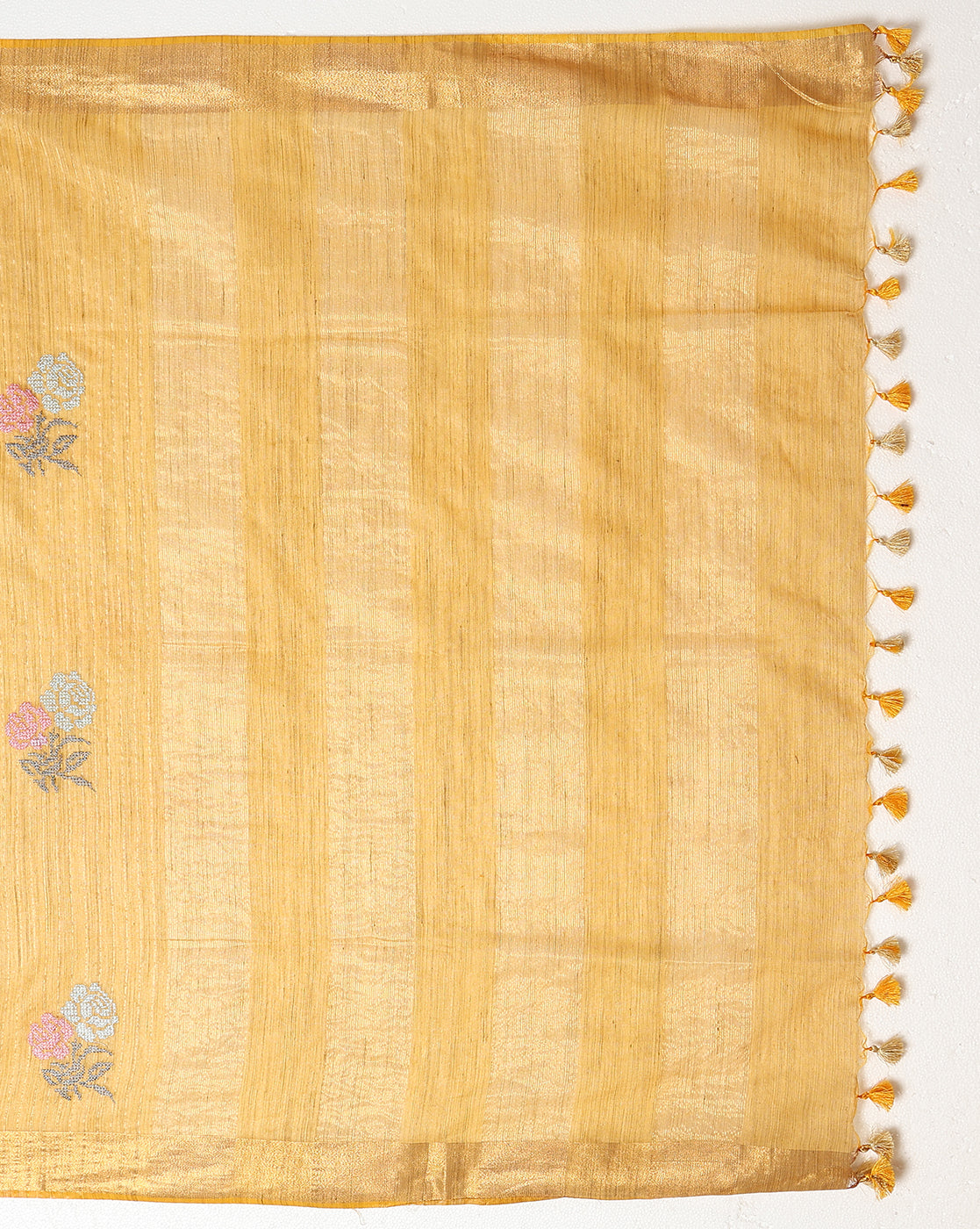 * Finally, traditional hand embroidery work is added to highlight motifs, borders, or pallus.