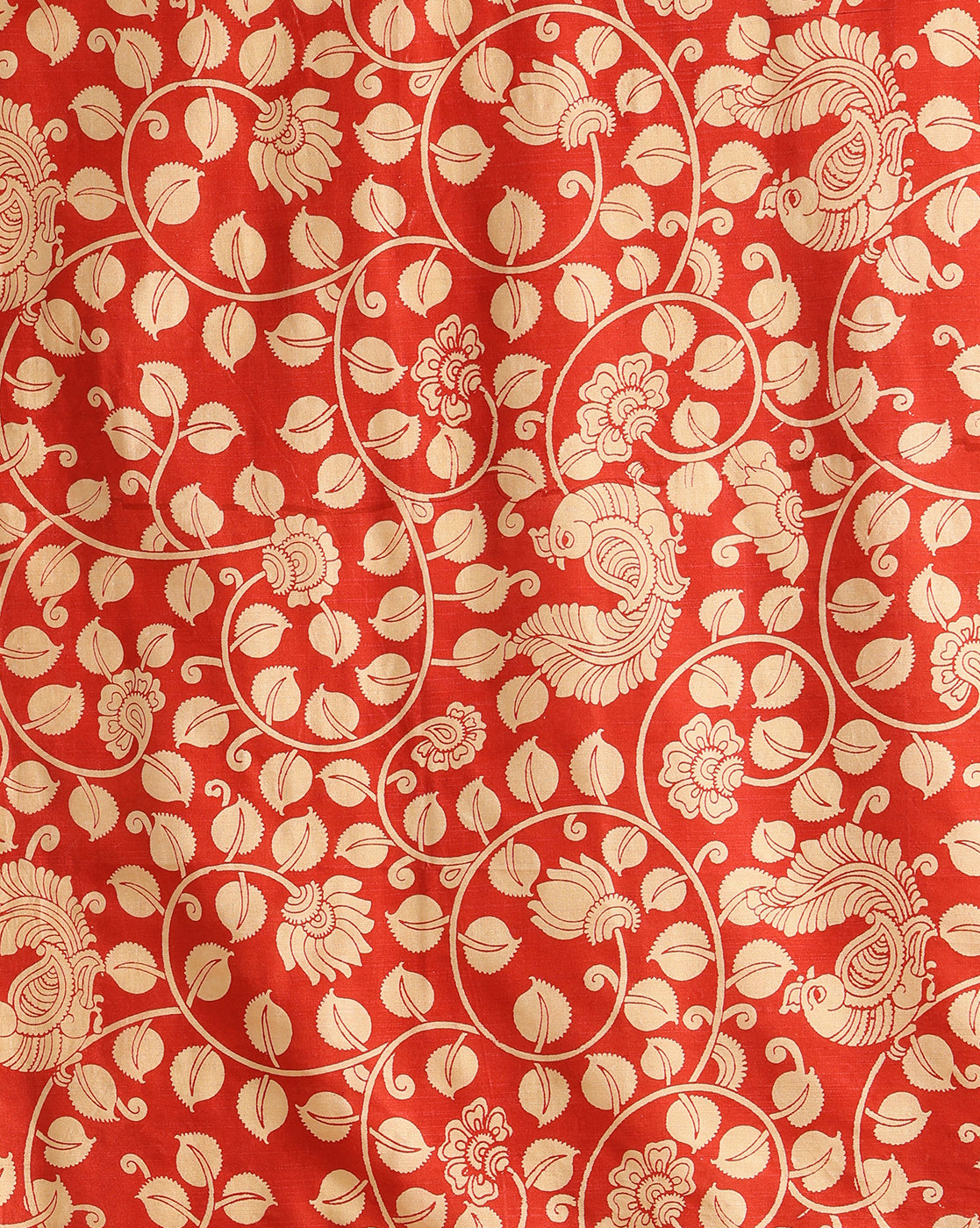 Anvaya Pure Mul Cotton Ajrakh Saree True Red