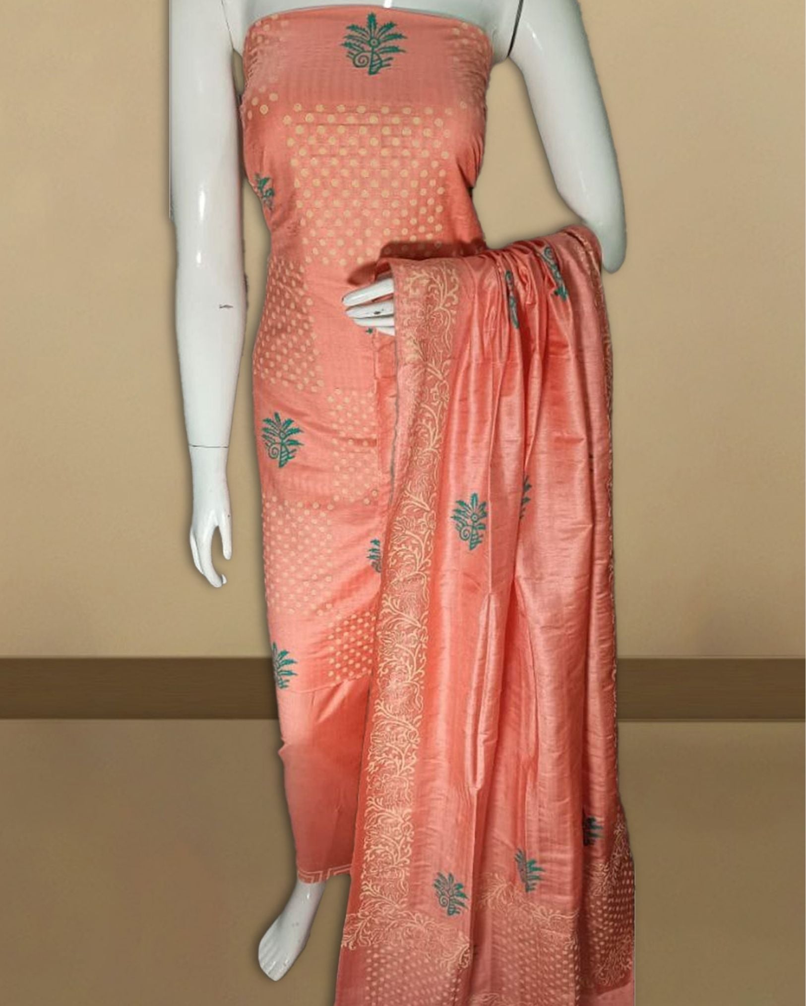 A Suit Piece with Bottom and Dupatta refers to a set of fabric pieces used to create a traditional Indian suit ensemble. It includes a fabric for the suit's top (kameez), bottom (salwar or pants), and a matching or contrasting dupatta (scarf).