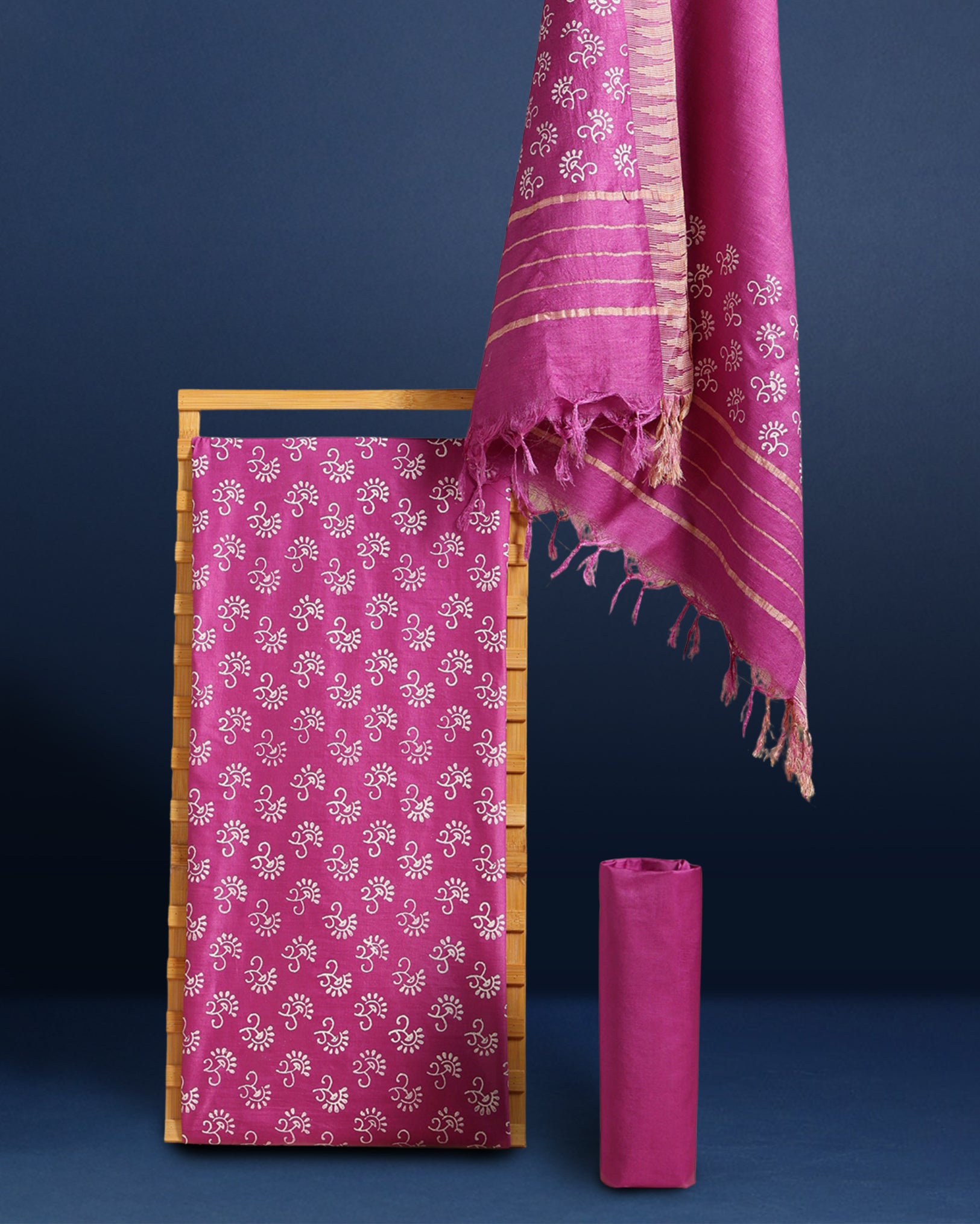 A Suit Piece with Bottom and Dupatta refers to a set of fabric pieces used to create a traditional Indian suit ensemble. It includes a fabric for the suit's top (kameez), bottom (salwar or pants), and a matching or contrasting dupatta (scarf).