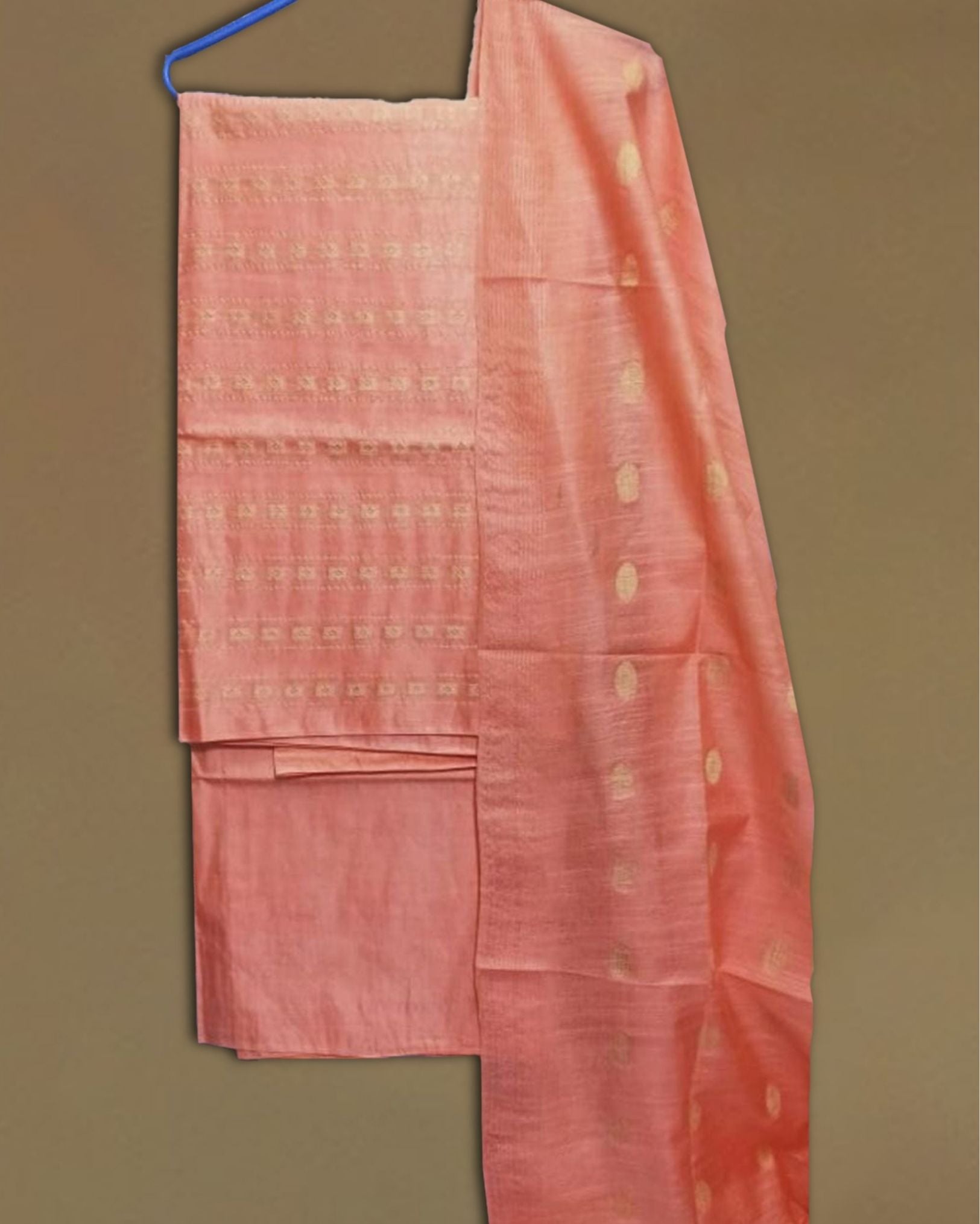 Elevate your ensemble with our Handcrafted Katan Silk Self Weaving Suit. Featuring self-weaving patterns on fine Katan silk fabric, each suit exudes elegance and sophistication, perfect for special events and celebrations.
