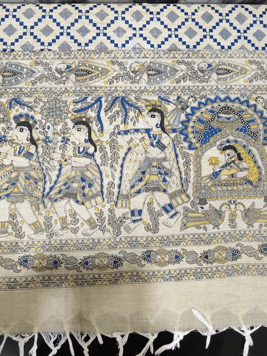 -The fabric is then hand block printed or screen printed with Madhubaniinspired motifs.