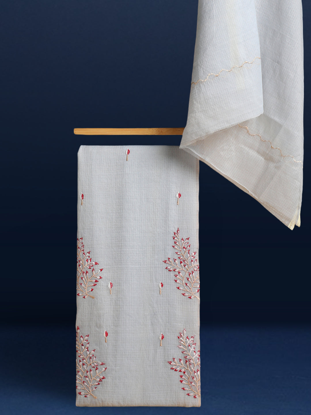 Embroidered Graceful Kota Doria Gray Suit (Top+Dupatta)