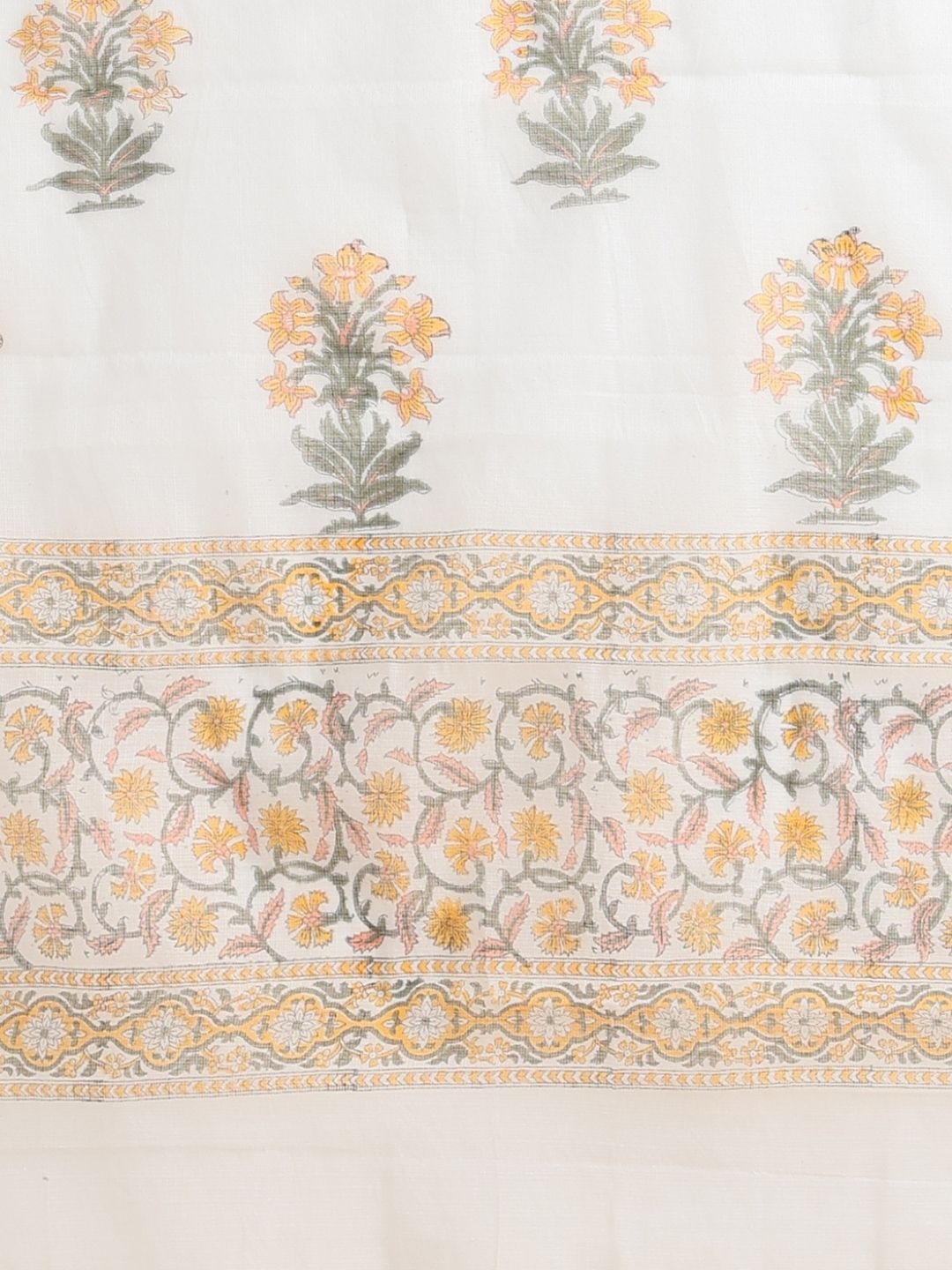 Pure cotton Kota Doria suit showcasing traditional hand block prints. Light, airy, and breathable, making it perfect for daily wear, festive gatherings, or relaxed occasions with understated ethnic charm.