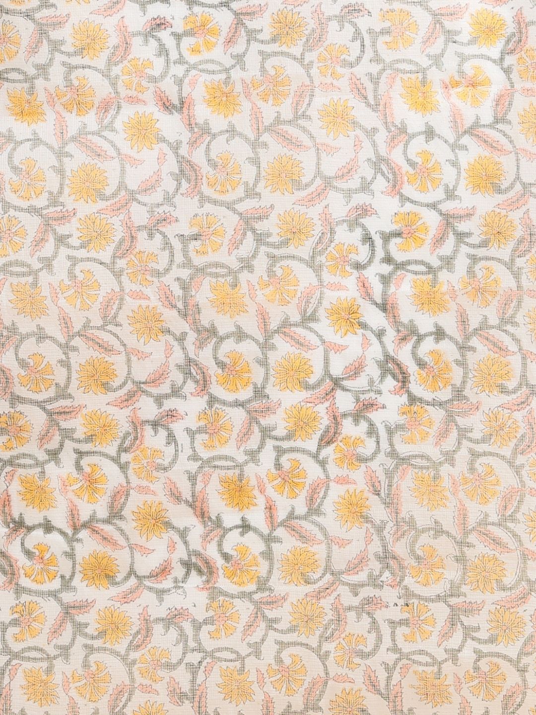 Avi Roop Pure Kota Doria Blockprint Suit Yellow