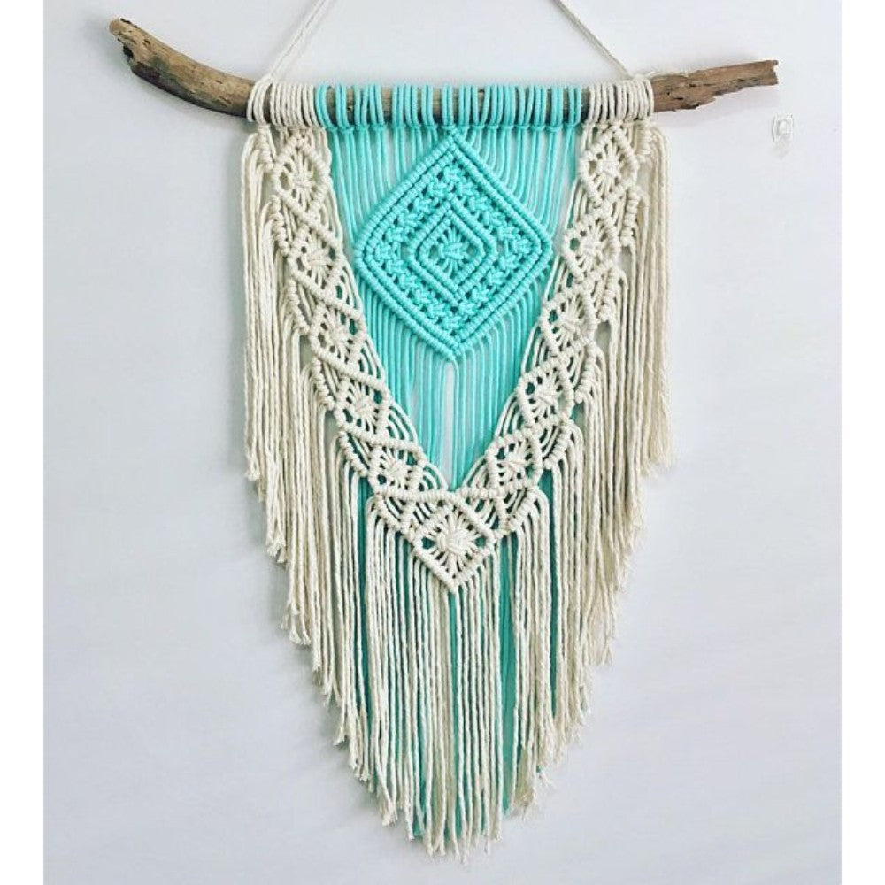 - Our Macrame Wall Decor showpieces are meticulously crafted using high-quality macrame cords, typically made from cotton fibers. These materials ensure durability and lend a natural, bohemian aesthetic to your space.