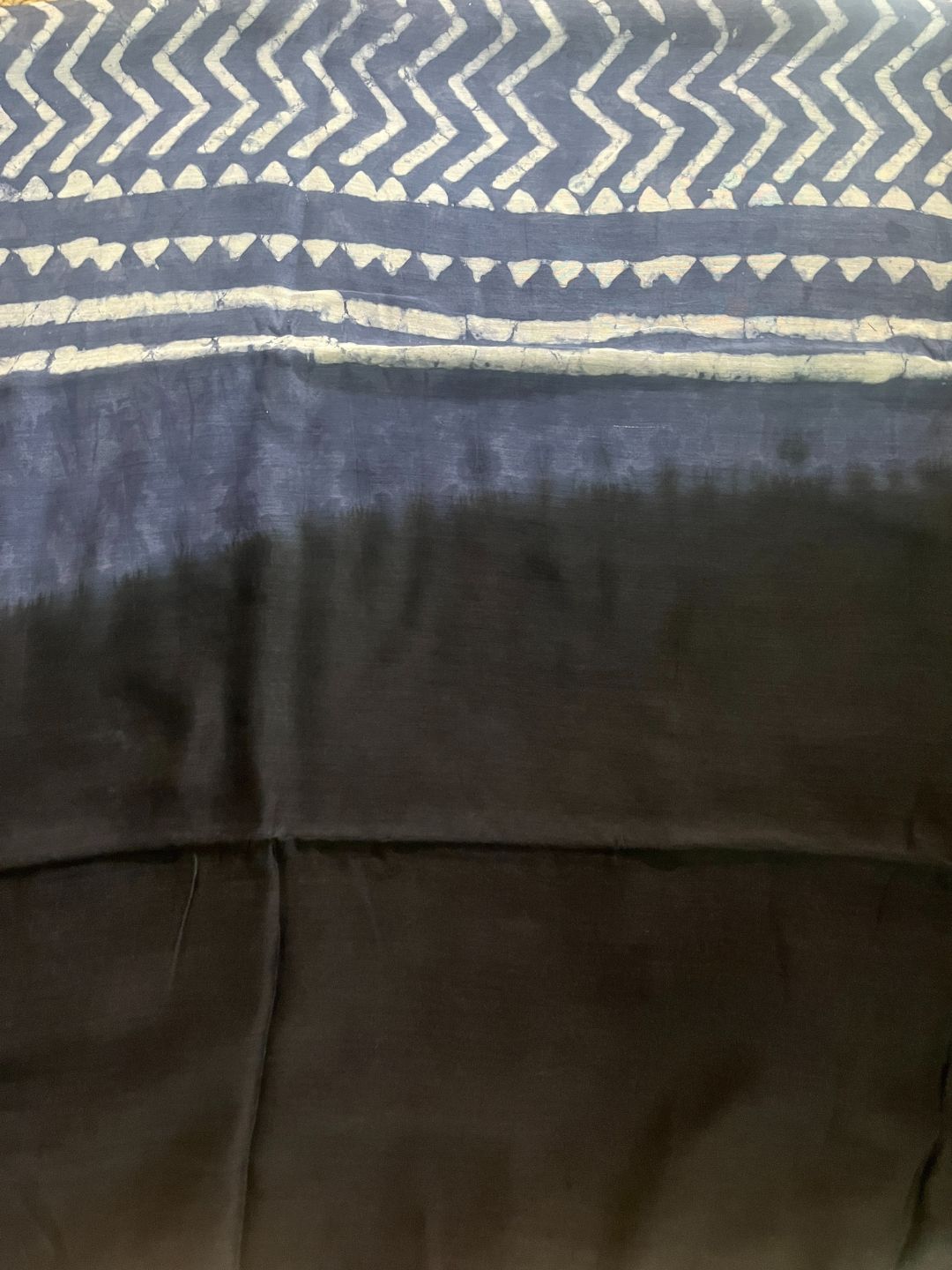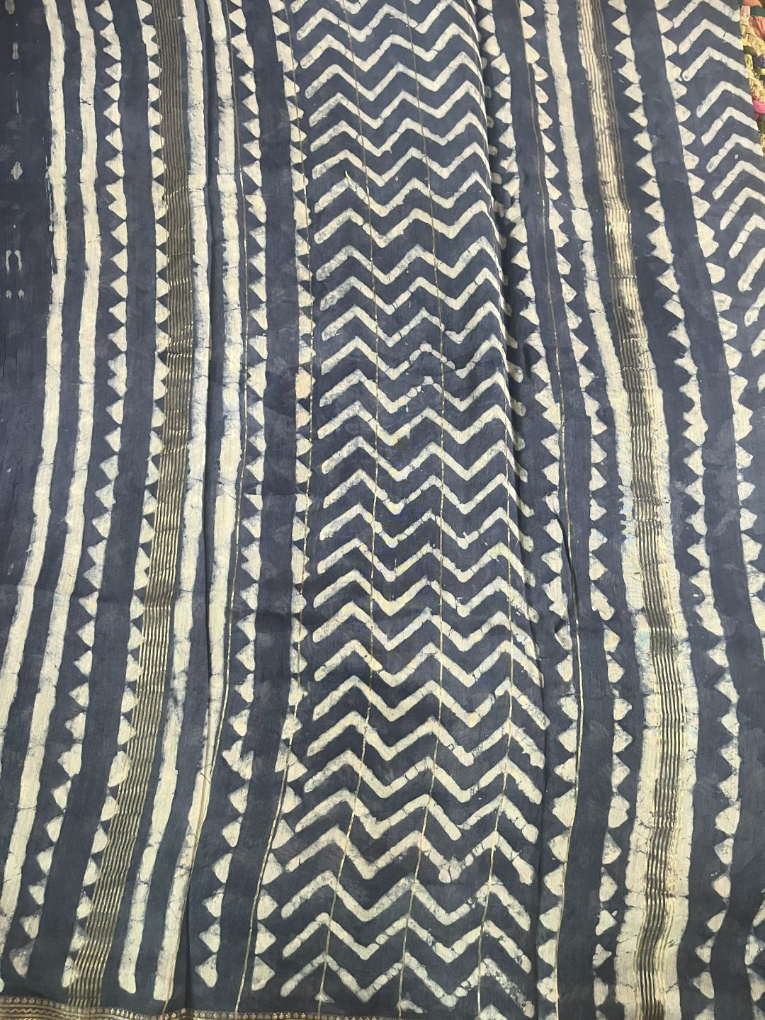 Lustrous Maheshwari Pure Silk Black & Indigo Blockprint Saree (LAST PIECE)