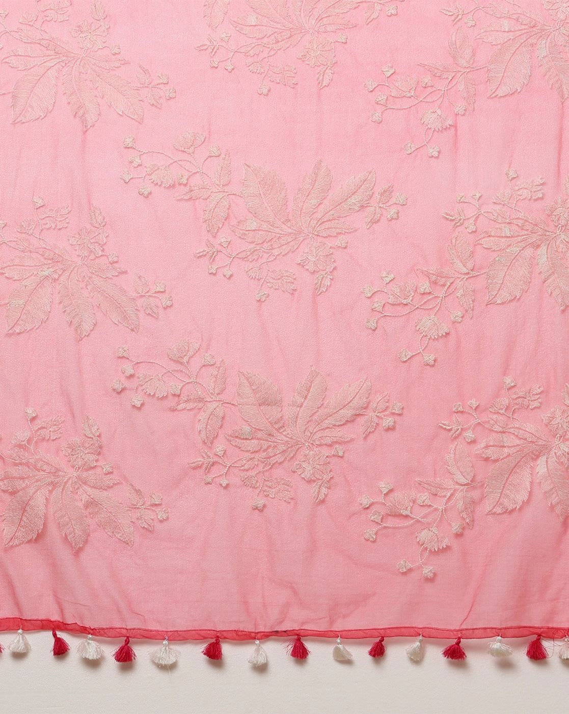 This saree features exquisite digital embroidery on pure organza silk, combining traditional craftsmanship with modern technology to create intricate and vibrant designs.