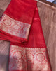 Celebrate timeless elegance with our Handcrafted Banarasi Silk Pure Linen Saree. Meticulously woven with pure silk and linen fibers, each saree boasts intricate Banarasi motifs and luxurious textures, making it a classic choice for special occasions.