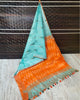 A Slub Linen Ikkat Work Handloom Saree is crafted from slub linen fabric featuring intricate Ikkat patterns created using traditional handloom techniques. Ikkat is a weaving method that produces unique geometric or floral designs.