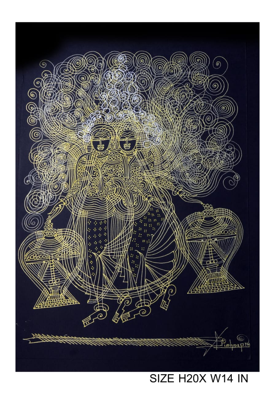 Artist Krishna Prakash is one among such gems, who has self taught this art form. The main subject of these paintings are heavily ornamented god and goddesses drawn primarily from Indian mythology.