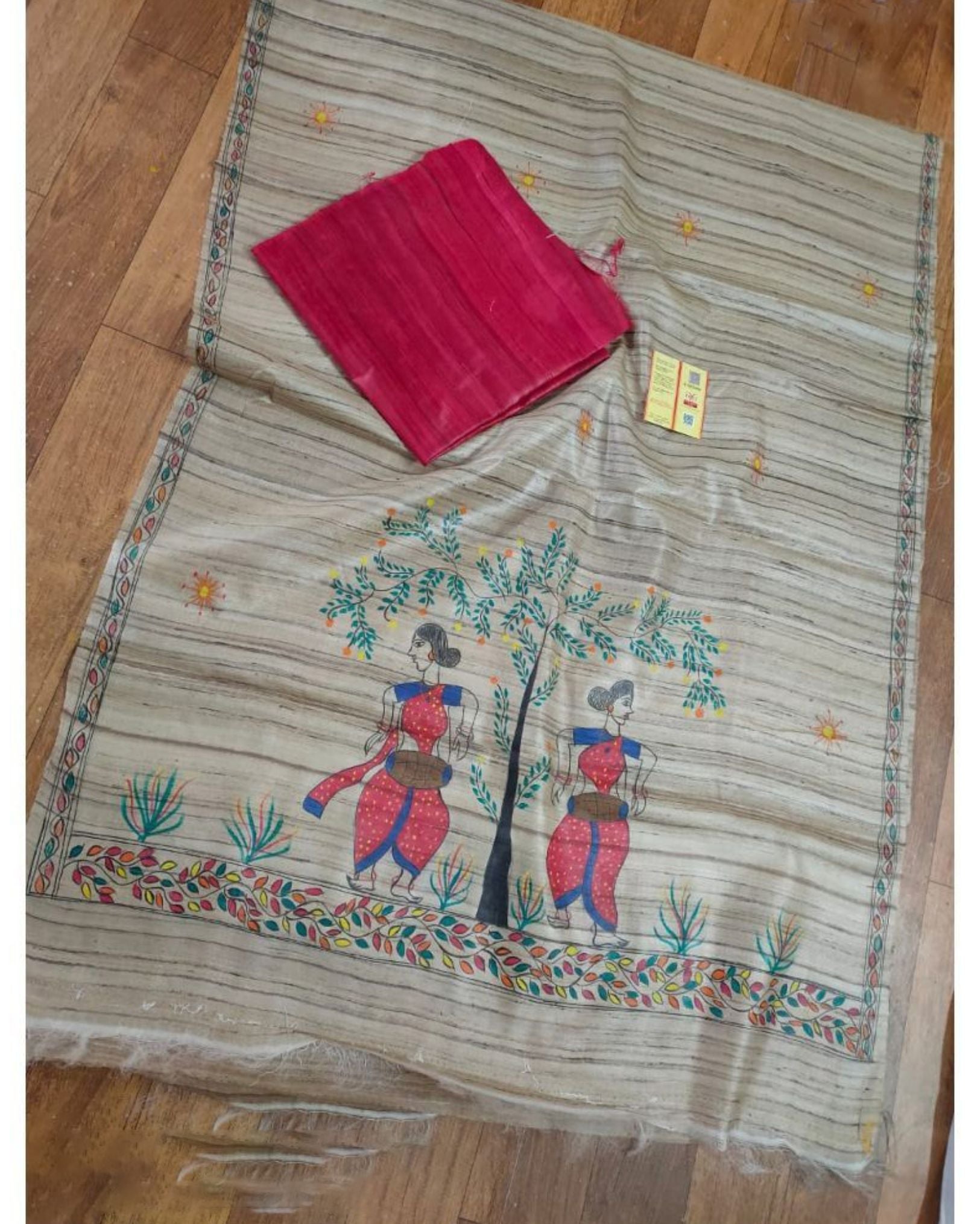 Make a style statement with our Handcrafted Silkmark Tussar Madhubani Suit. Featuring traditional Madhubani paintings on Tussar silk fabric, each suit exudes elegance and charm, perfect for weddings, festivals, and special occasions, adding a touch of cultural flair to your look.