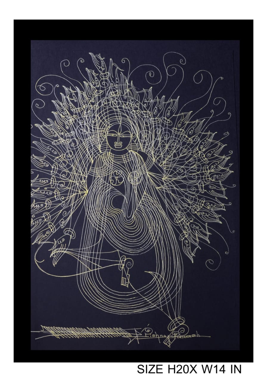 Artist Krishna Prakash is one among such gems, who has self taught this art form. The main subject of these paintings are heavily ornamented god and goddesses drawn primarily from Indian mythology.