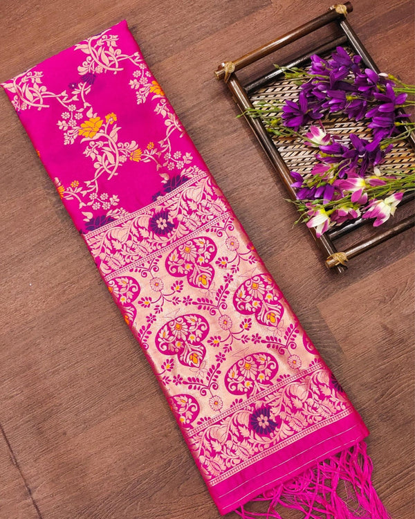 Noor-e-Banaras Brocade Lichi Silk Dupatta Vibrant Pink
