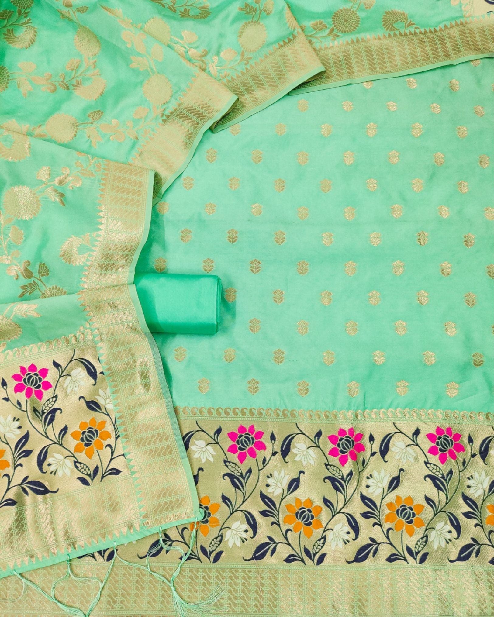 Noor-e-Banaras Brocade Weaving Lichi Silk Mint Green Suit