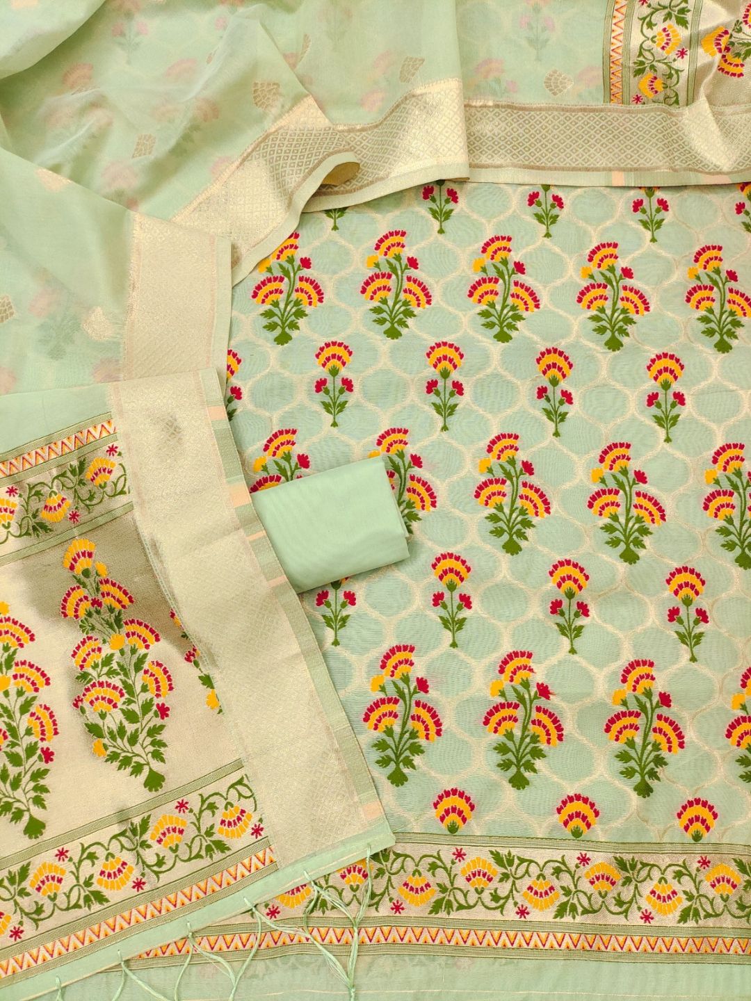 Noor-e-Banaras Cotton Suit Light Green