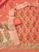 Graceful cotton suit set adorned with exquisite Banarasi brocade work, blending traditional artistry with modern comfort. Perfect for festive events or special occasions, this elegant attire radiates sophistication and cultural charm.
