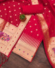 Skilled artisans meticulously weave lichi silk threads with zari using traditional handlooms or specialized looms in Banaras. The process involves detailed craftsmanship to achieve the elaborate motifs that are the hallmark of Banarasi brocade.