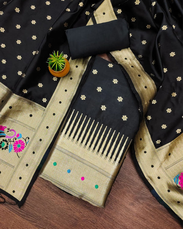Elevate your ethnic charm with our Banarasi Lichi Silk Suit featuring exquisite brocade weaving. ... Read more
