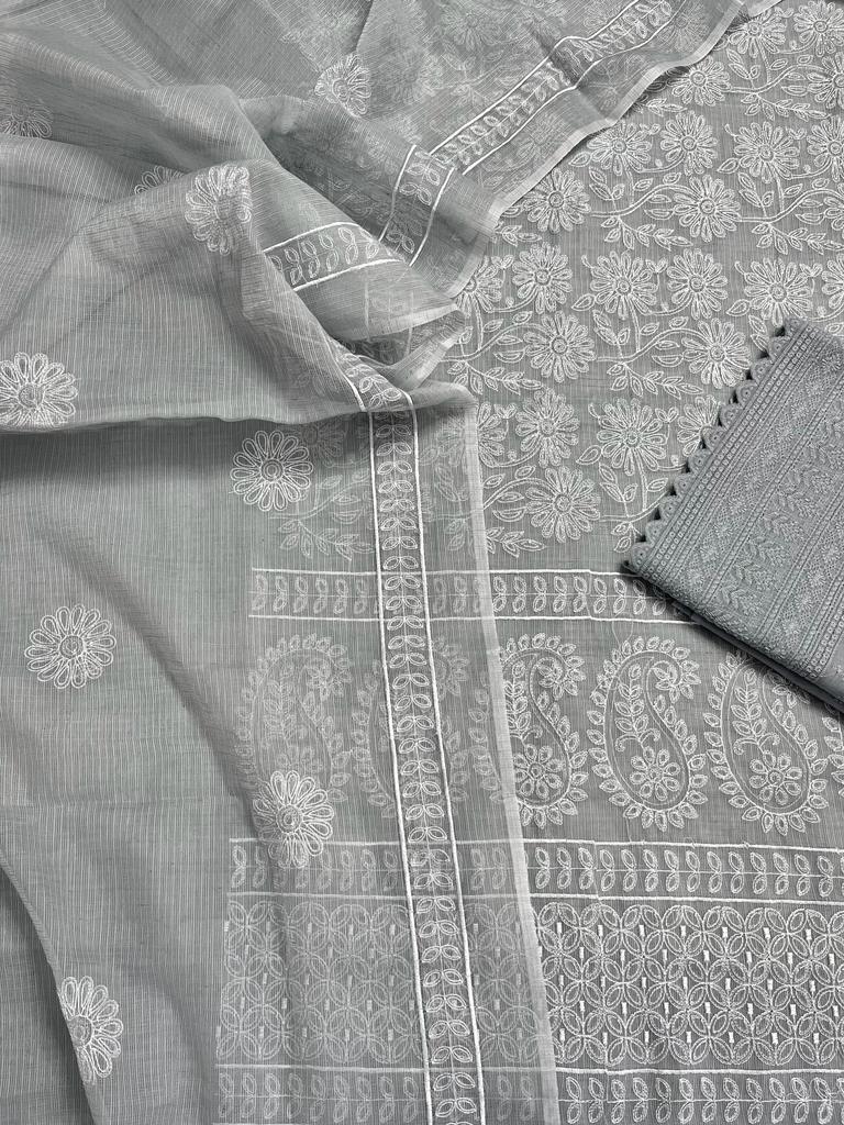 Elevate your attire with our Handcrafted Kota Doria Embroidered Suit. Meticulously embroidered on lightweight Kota Doria fabric, each suit showcases exquisite craftsmanship and timeless elegance, perfect for making a statement at any event.