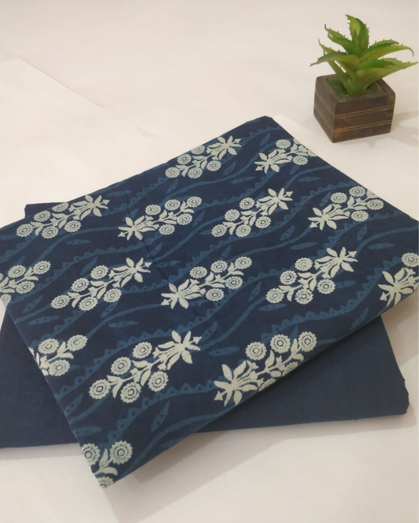 Chaap Pure Cotton Mysterious Indigo Blockprinted Suit (Top & Bottom)
