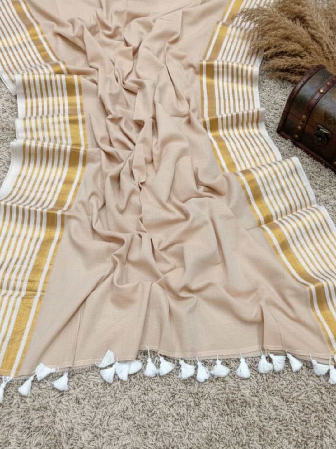Baadal Baani Pure Mul Cotton Handloom Beige Saree