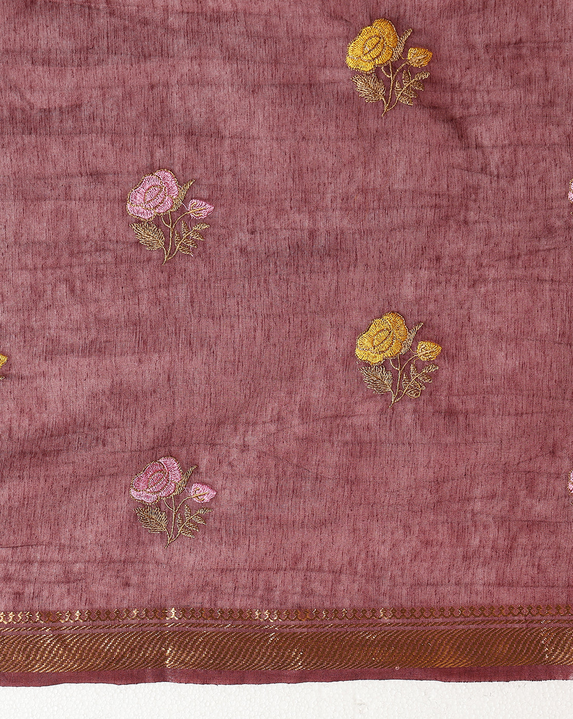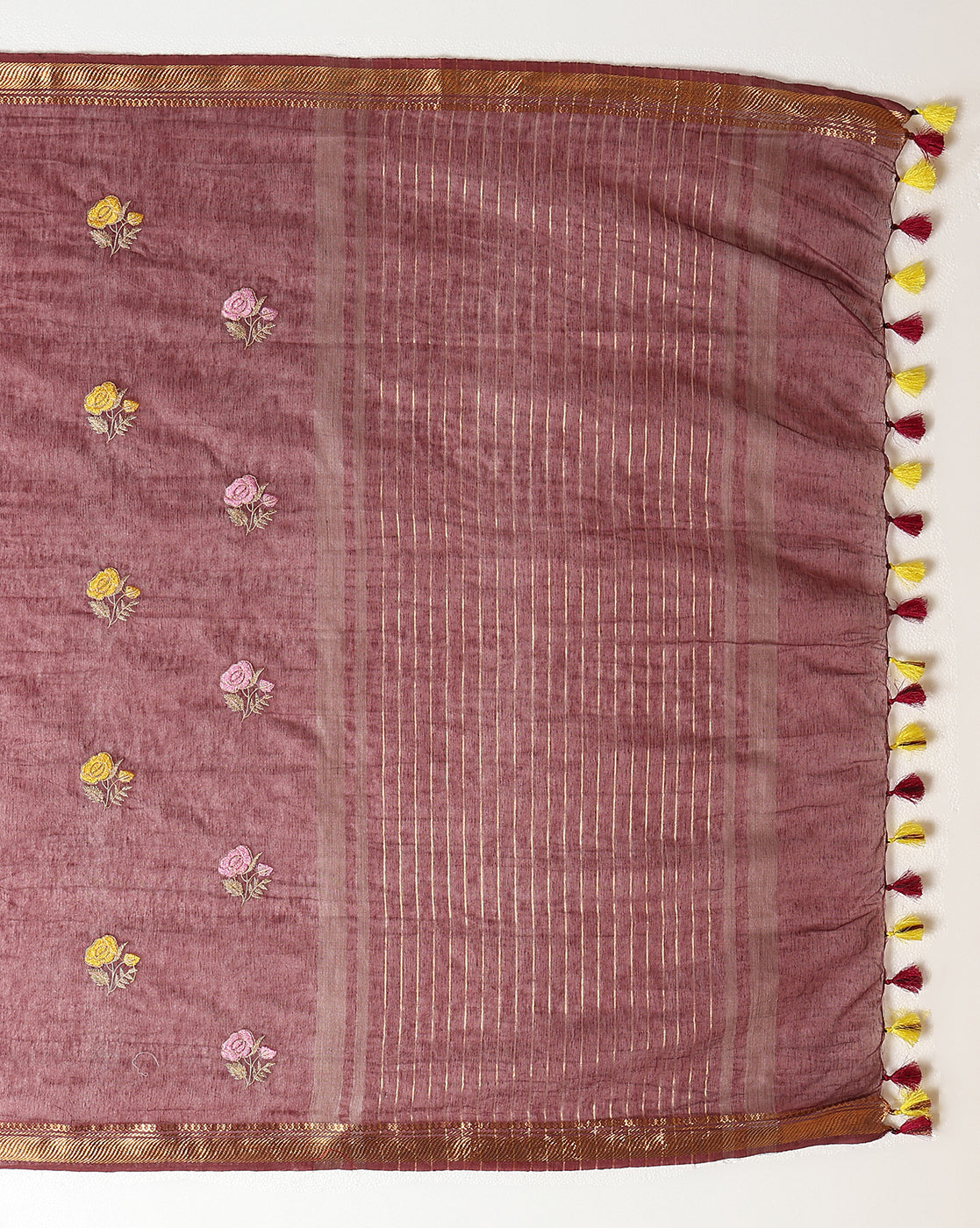Aabha Silk Linen Embroidered Saree Rich Wine