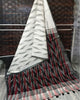 Chic Ikkat Slub Linen Handloom White Black Saree