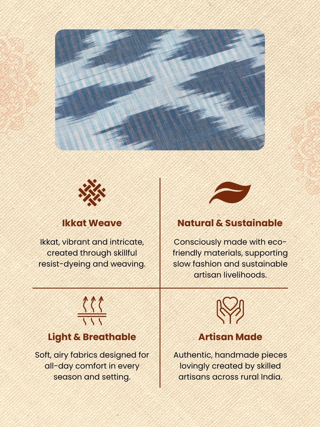 Elevate your style with our Handcrafted Slub Linen Ikkat Saree. Featuring traditional Ikkat patterns on soft slub linen fabric, each saree exudes elegance and charm, perfect for adding a touch of ethnic flair to your ensemble.