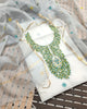 Elegant Kota cotton suit material with intricate embroidery work. Includes top and dupatta, offering a lightweight, breathable, and stylish ensemble. Perfect for festive and casual wear with a touch of tradition.