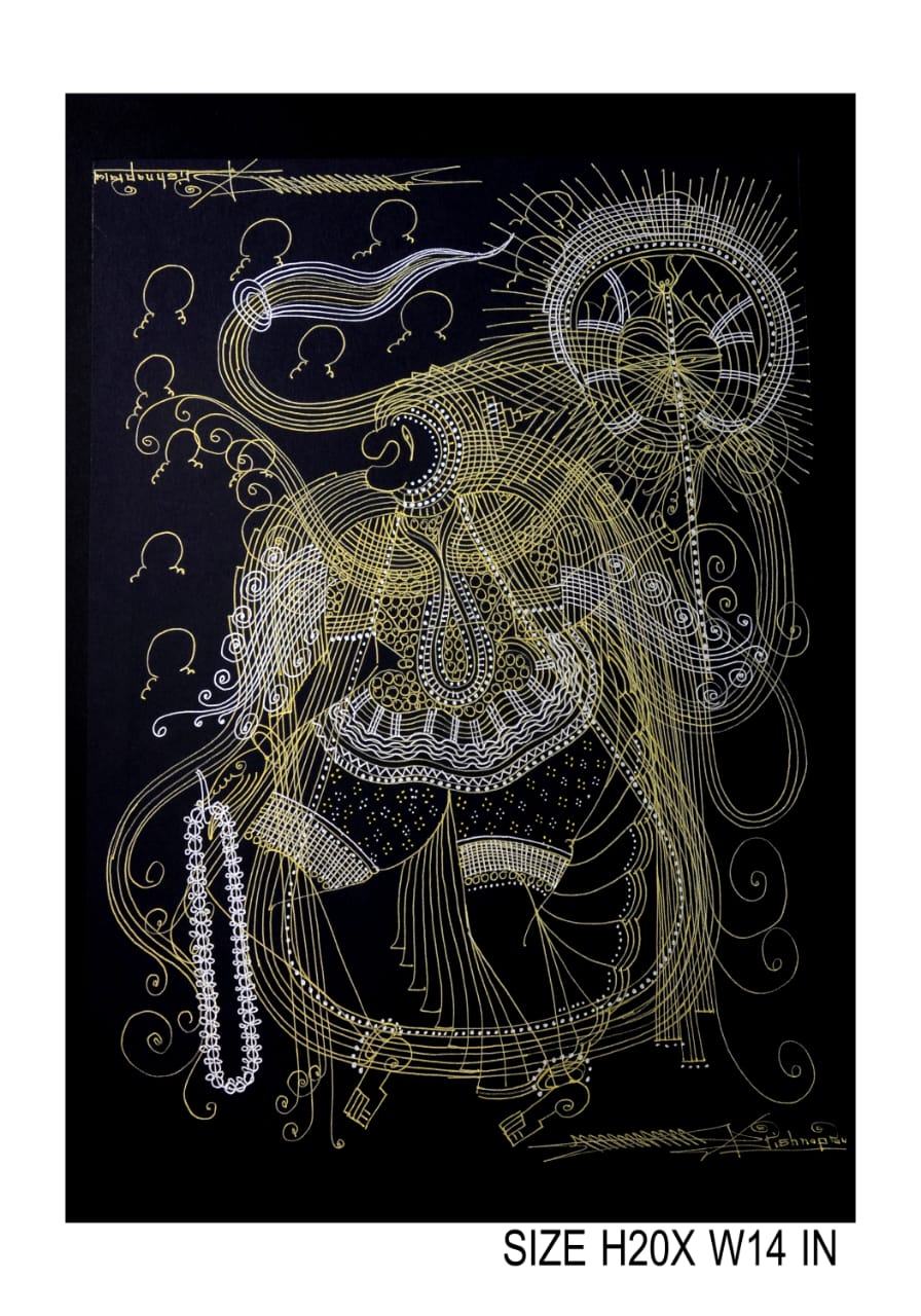 Artist Krishna Prakash is one among such gems, who has self taught this art form. The main subject of these paintings are heavily ornamented god and goddesses drawn primarily from Indian mythology.
