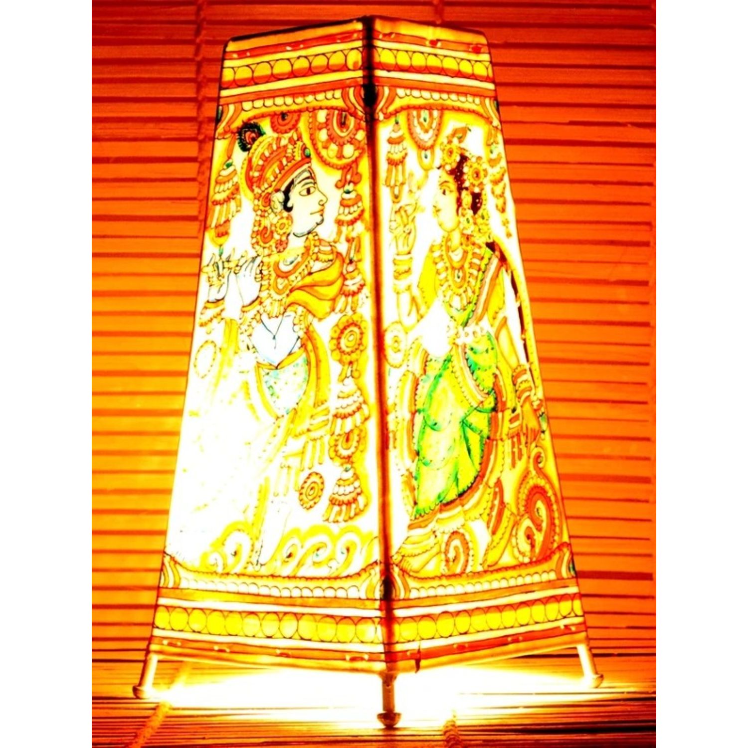 Material: LeatherWork: Kalamkari Hand painted perforationThe Photograph is of 9 Inches option.Thi... Read more