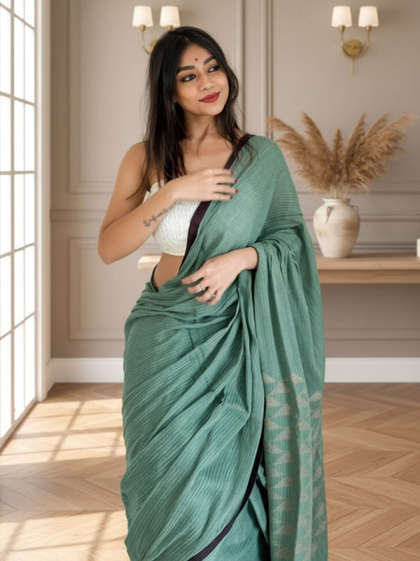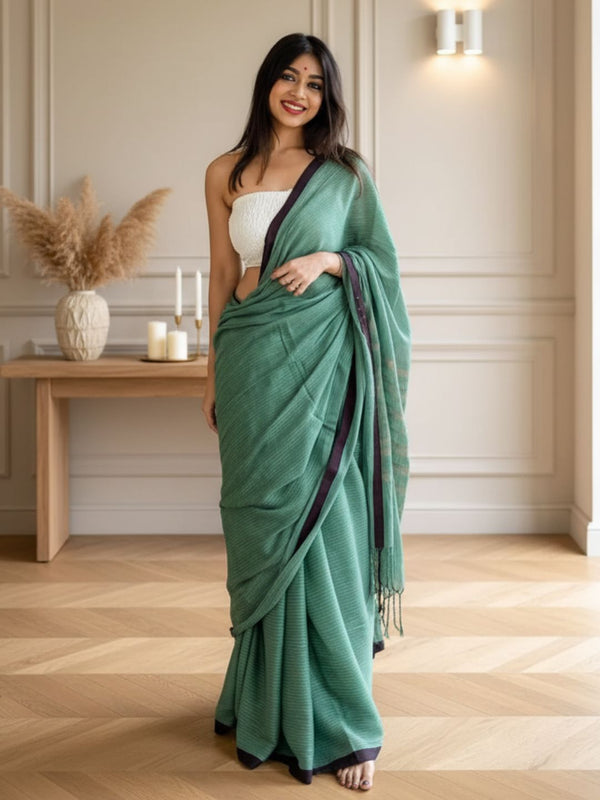 Authentic 100% pure khadi cotton by cotton handloom saree featuring exquisite anchal weaving design. Soft, breathable, and lightweight - perfect for festive occasions, cultural gatherings, or elegant everyday wear.