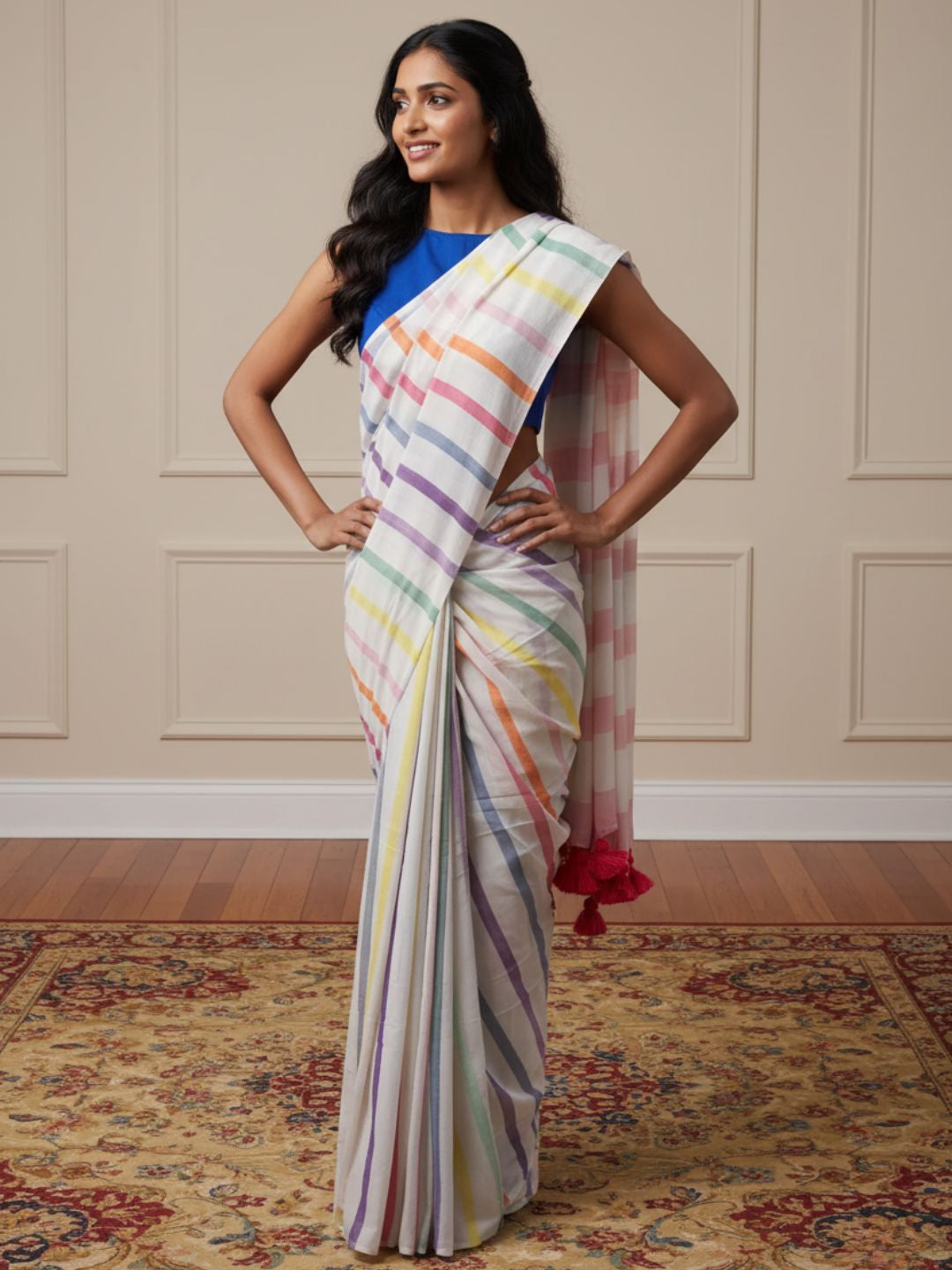 Authentic pure khadi cotton by cotton handloom saree, soft, breathable, and lightweight. Perfect for everyday wear, festive occasions, or cultural gatherings, showcasing timeless traditional craftsmanship.