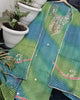 Ajrakh Printed Arapawa Blue Chanderi Sil