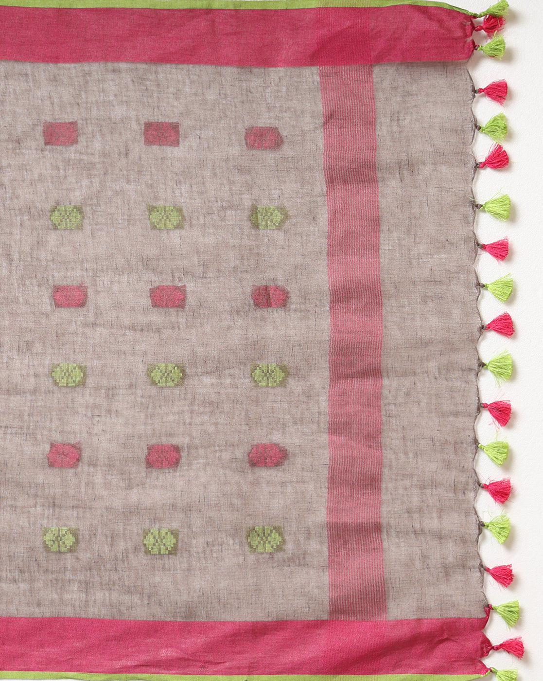 1. What is the composition of the Handwoven Pure Linen Dupatta Set with Katan Top Dress Material?
