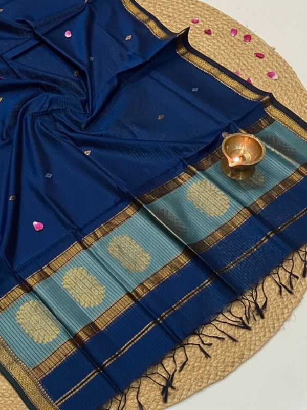 Zari Sutra Maheshwari Silk Deep Blue Sui
