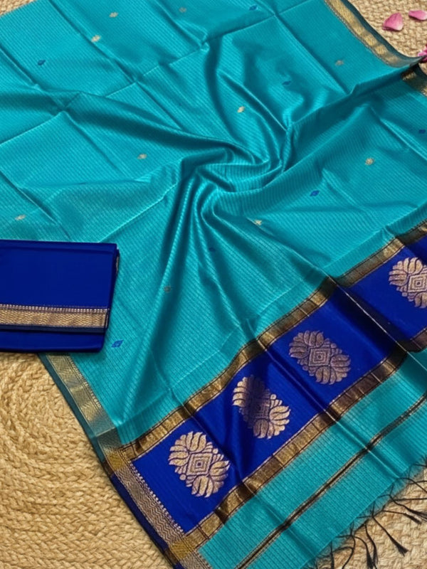 Zari Sutra Calm Blue Maheshwari Silk Sui