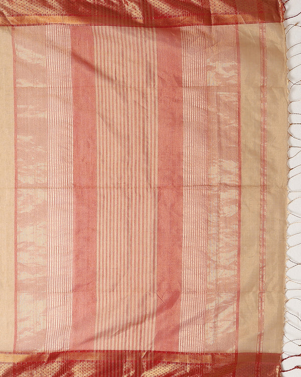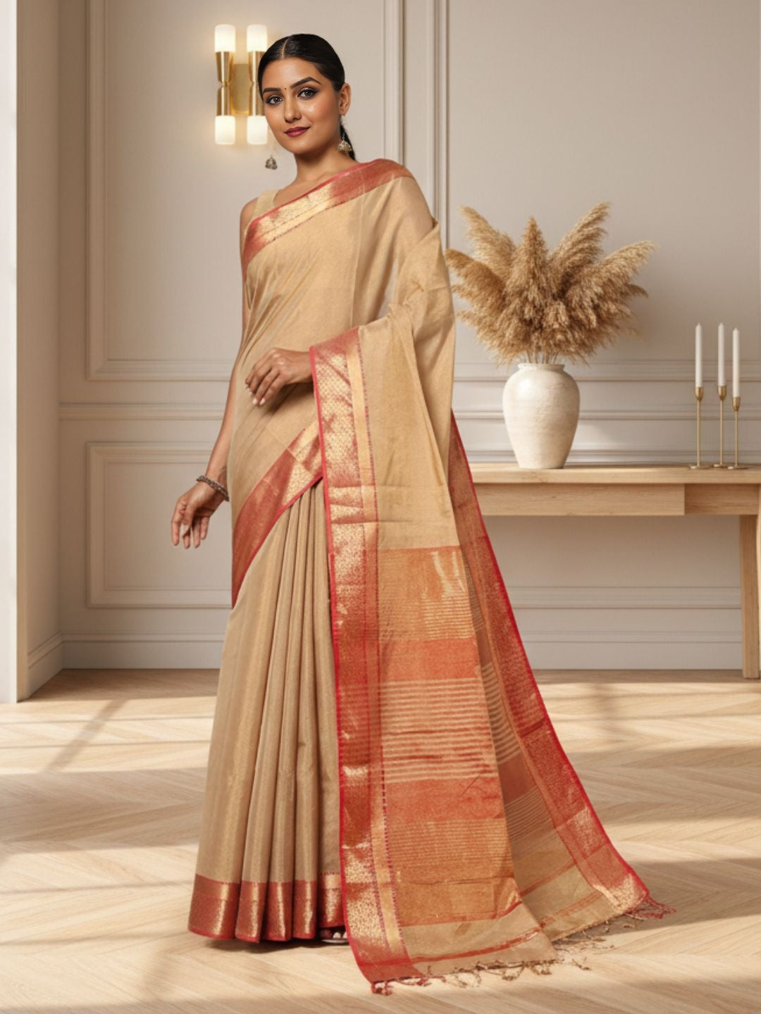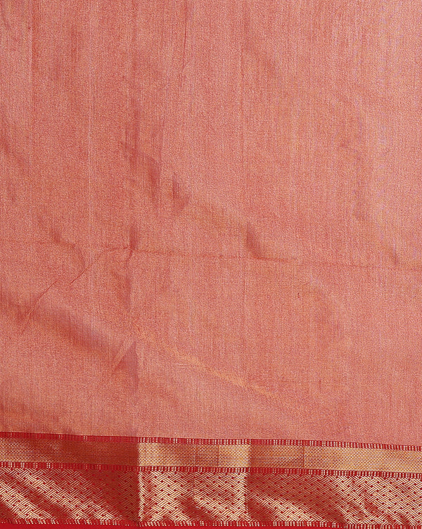 Step into glamour with our Handloom Maheshwari Silk Tissue Saree. Adorned with delicate tissue work, each saree adds a touch of sparkle and sophistication to your ensemble, perfect for making a statement at any event, blending tradition with contemporary style.