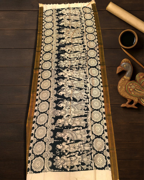Elevate your style with a Mangalagiri Silk Hand Painted Dupatta. Featuring intricate, artistic designs, it's perfect for adding a traditional yet contemporary touch to your festive and ethnic outfits.