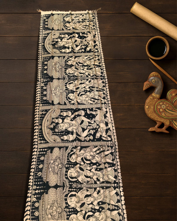 Syaahi Mangalagiri Silk Dupatta Silky Black & White
