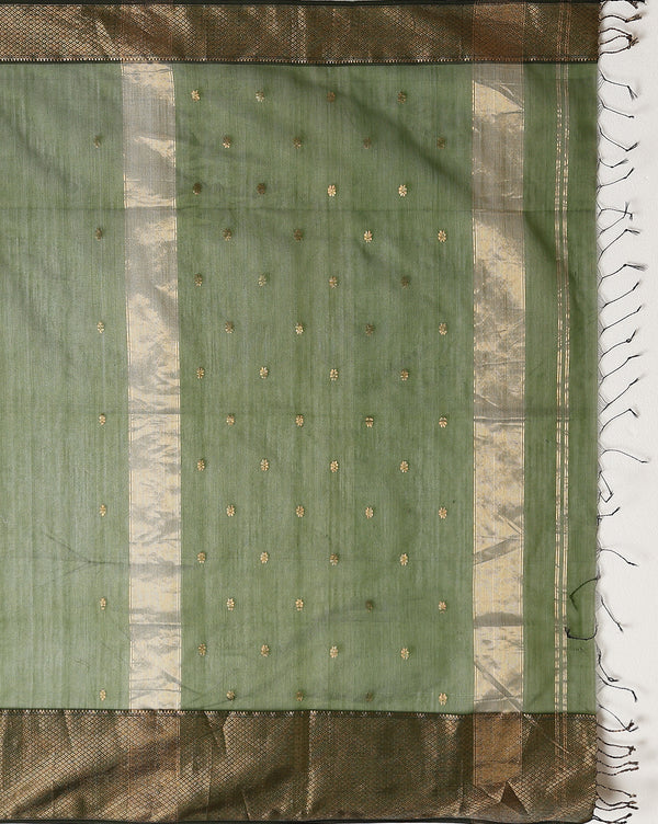Indulge in luxury with our Handloom Maheshwari Silk Buti Saree. Adorned with delicate buti motifs, each saree exudes elegance and opulence, perfect for special occasions and formal events, adding a touch of sophistication to your ensemble.