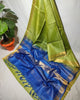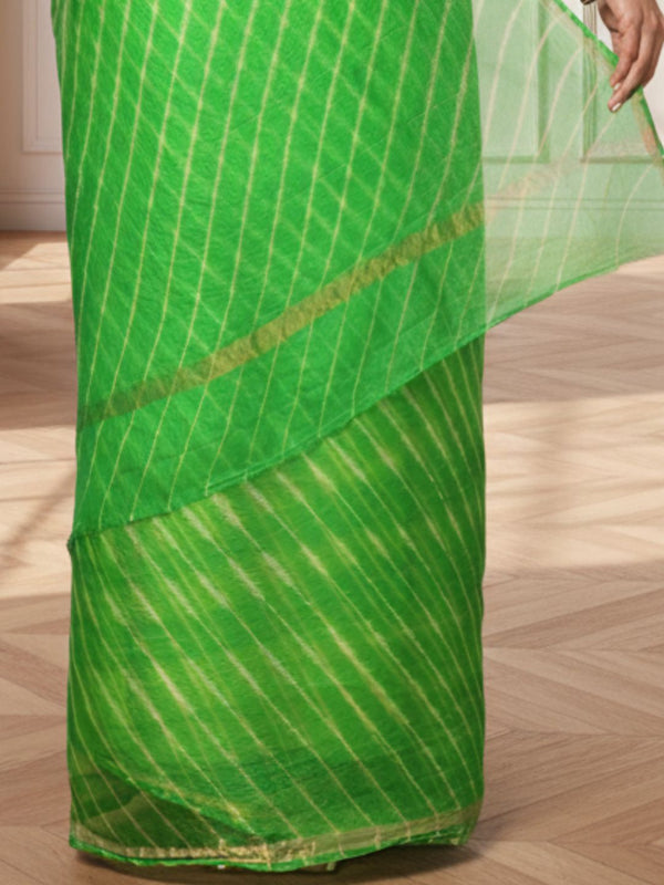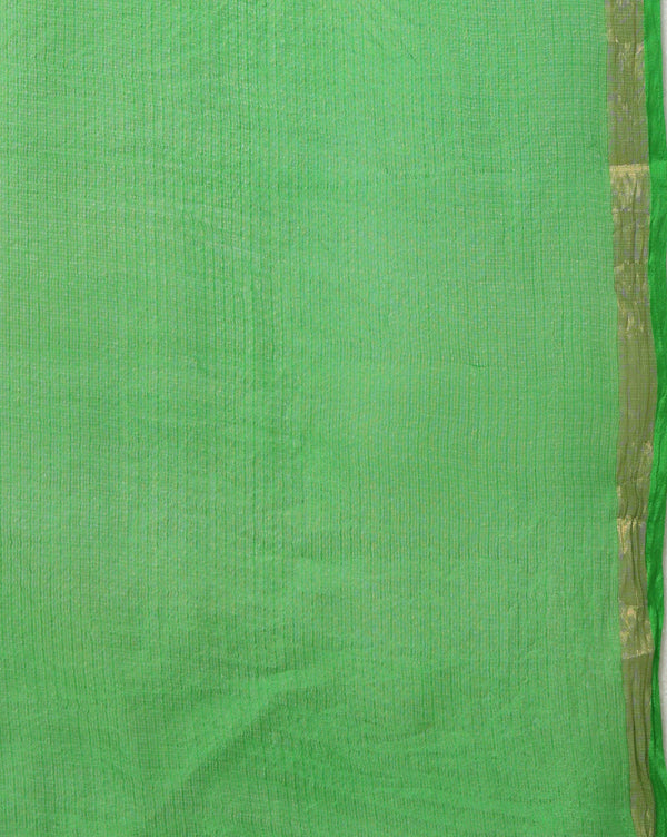 Lehariya Pure Silk Kota Doria Leaf Green Saree Handcrafted