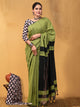 Nirmal Pure Khadi Cotton Sequin Saree Olive Green