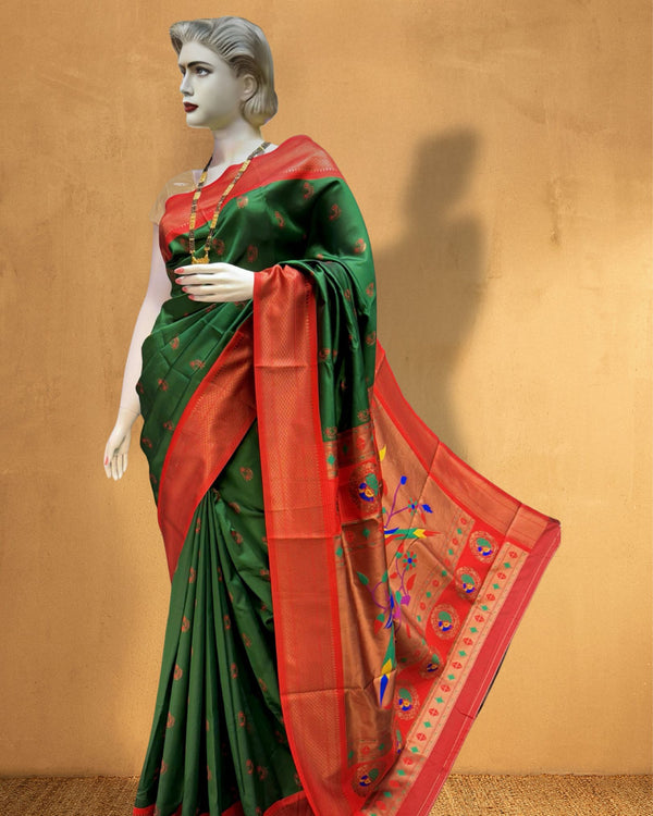 Marathi Mood Paithani Silk Meenakari Saree Green