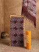A Pure Cotton Kota Doria Wax Batik Suit is a lightweight ethnic set made from handwoven Kota Doria cotton and decorated with hand wax batik patterns. The suit offers airy comfort with artistic detailing, making it suitable for daily and occasion wear.