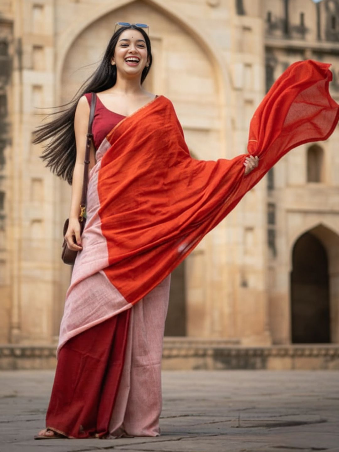 Authentic pure khadi cotton by cotton handloom saree, soft, breathable, and lightweight. Perfect for everyday wear, festive occasions, or cultural gatherings, showcasing timeless traditional craftsmanship.