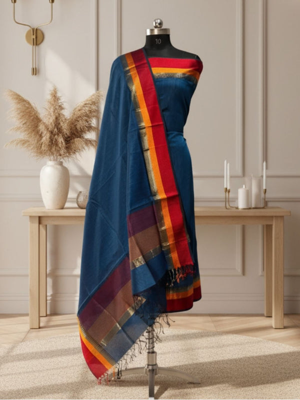 Zari Sutra Maheshwari Silk Deep Blue Suit