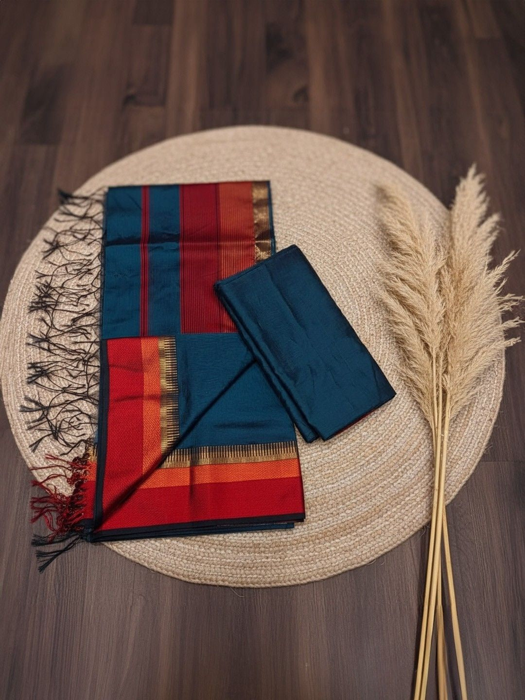 **Maheshwari Silk** is a traditional handwoven fabric from Maheshwar, Madhya Pradesh, known for its luxurious texture and lightweight feel. It blends silk and cotton, offering both shine and comfort. Characterized by intricate zari borders, reversible designs, and geometric or floral motifs, Maheshwari Silk sarees exude timeless grace and royal elegance.