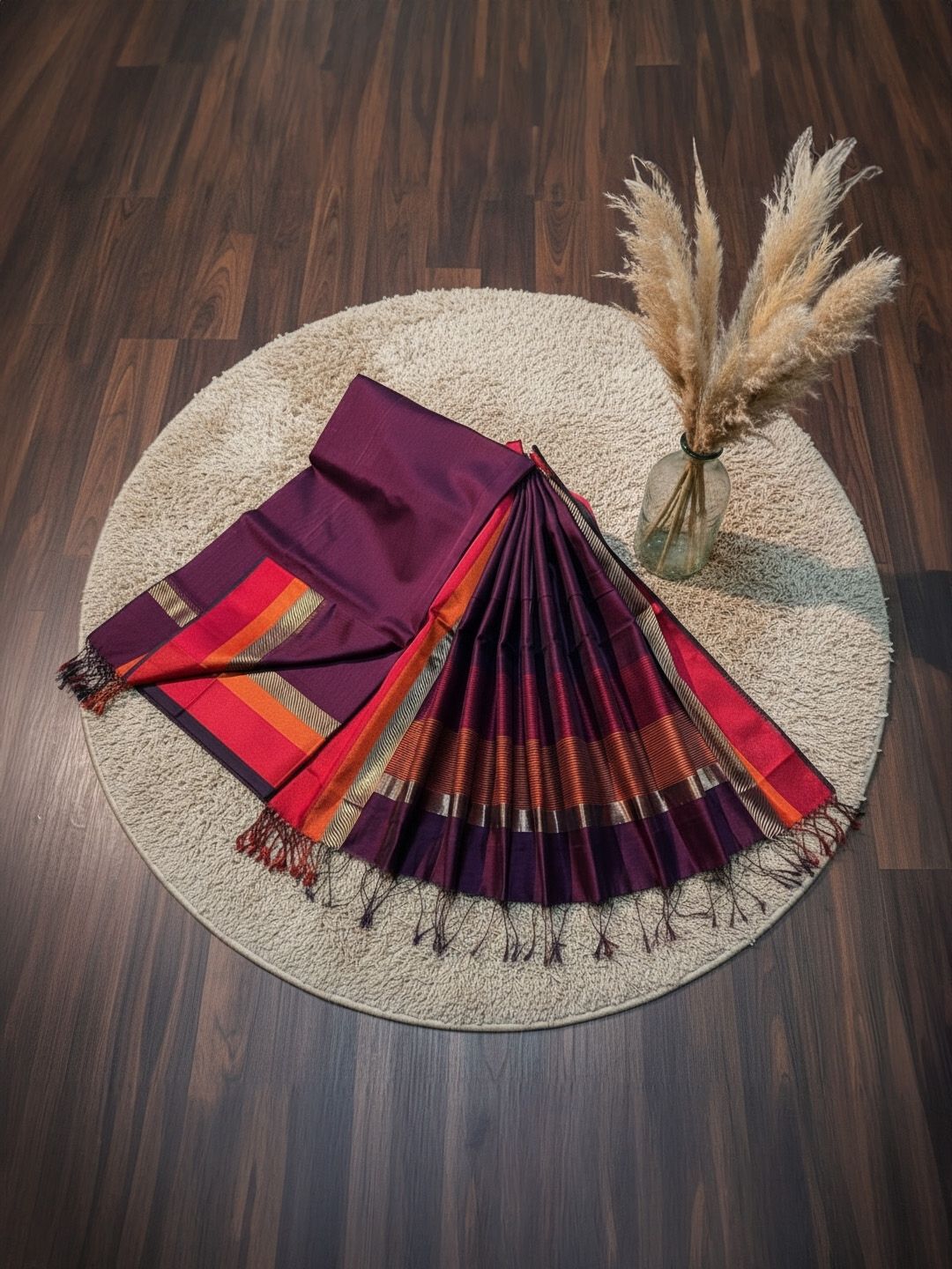 **Maheshwari Silk** is a traditional handwoven fabric from Maheshwar, Madhya Pradesh, known for its luxurious texture and lightweight feel. It blends silk and cotton, offering both shine and comfort. Characterized by intricate zari borders, reversible designs, and geometric or floral motifs, Maheshwari Silk sarees exude timeless grace and royal elegance.